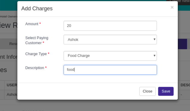 Adding charges: Owner can add extra charges based on customer need.