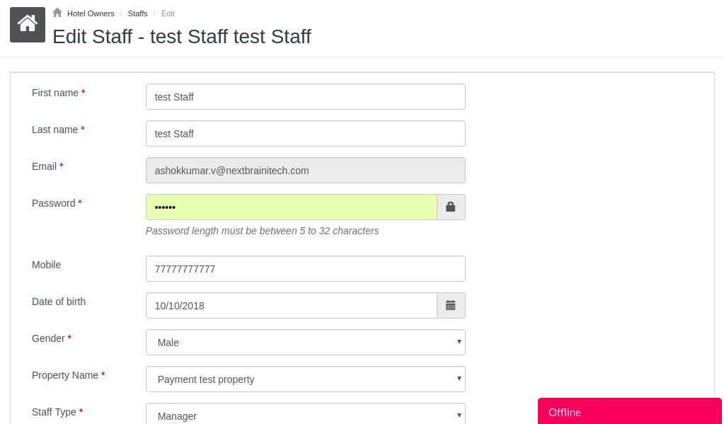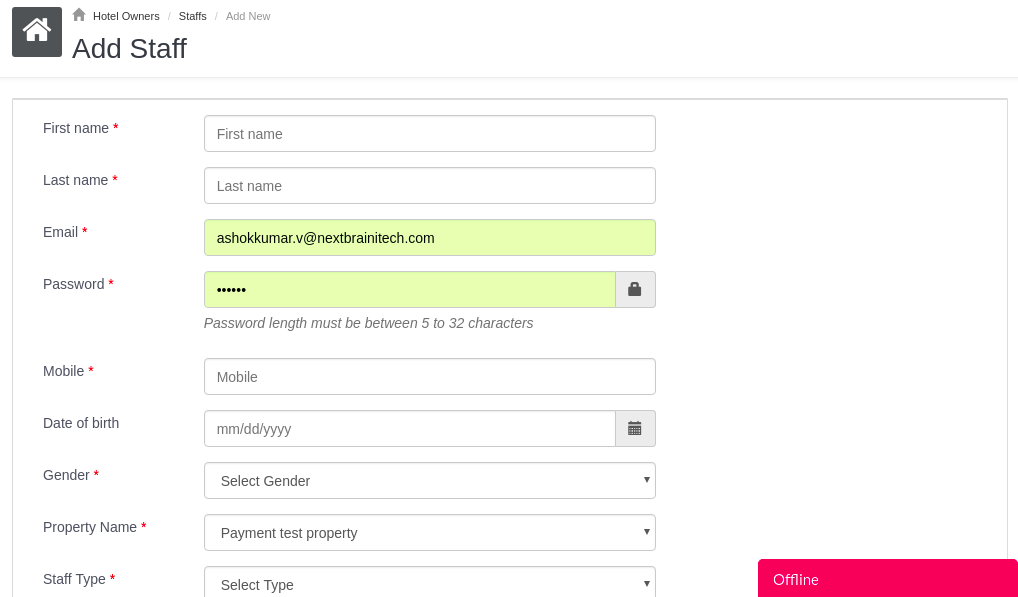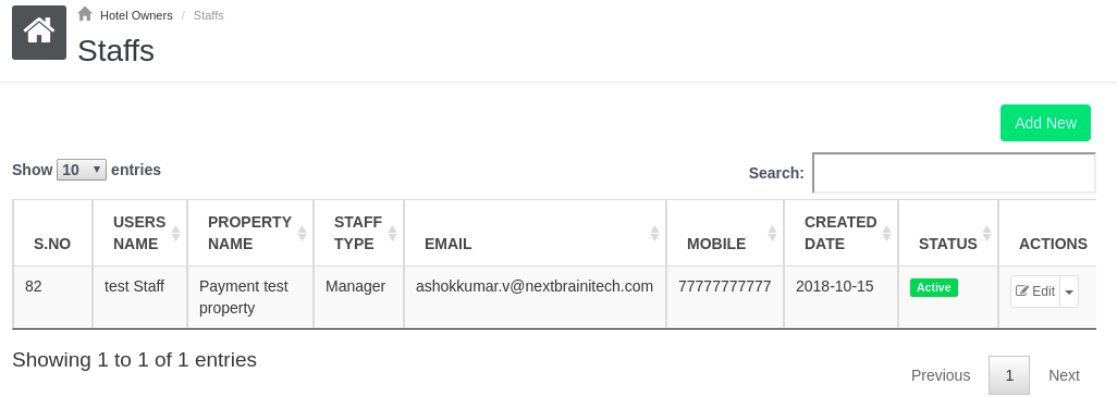 Hotel owners can add the staffs ,edit and delete the staffs.