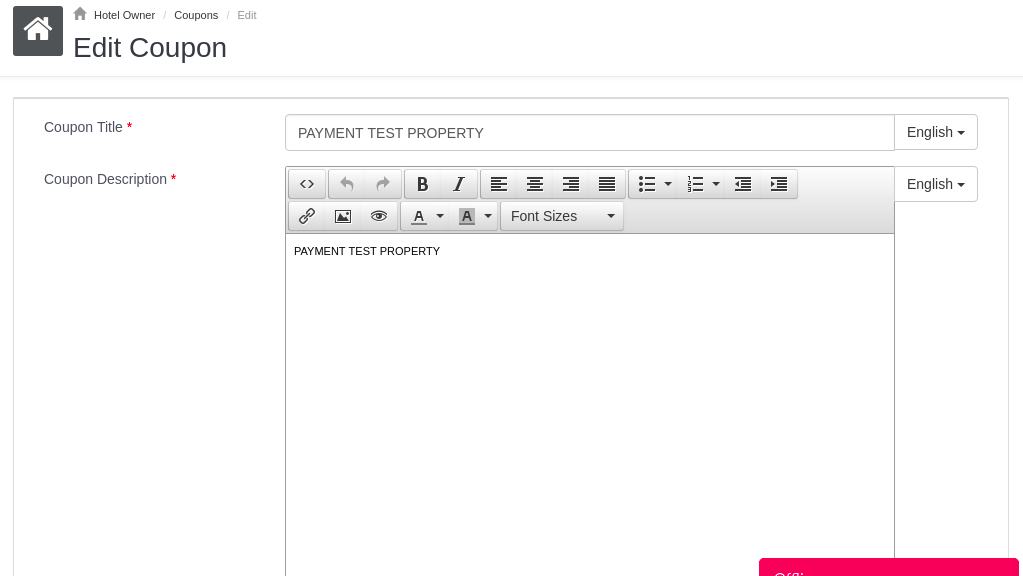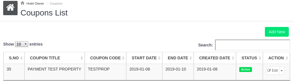 Hotel owners can add the coupons based on property. He can edit/delete and view the coupons. The coupons which is added under property will be user in front end when user booking the hotels.